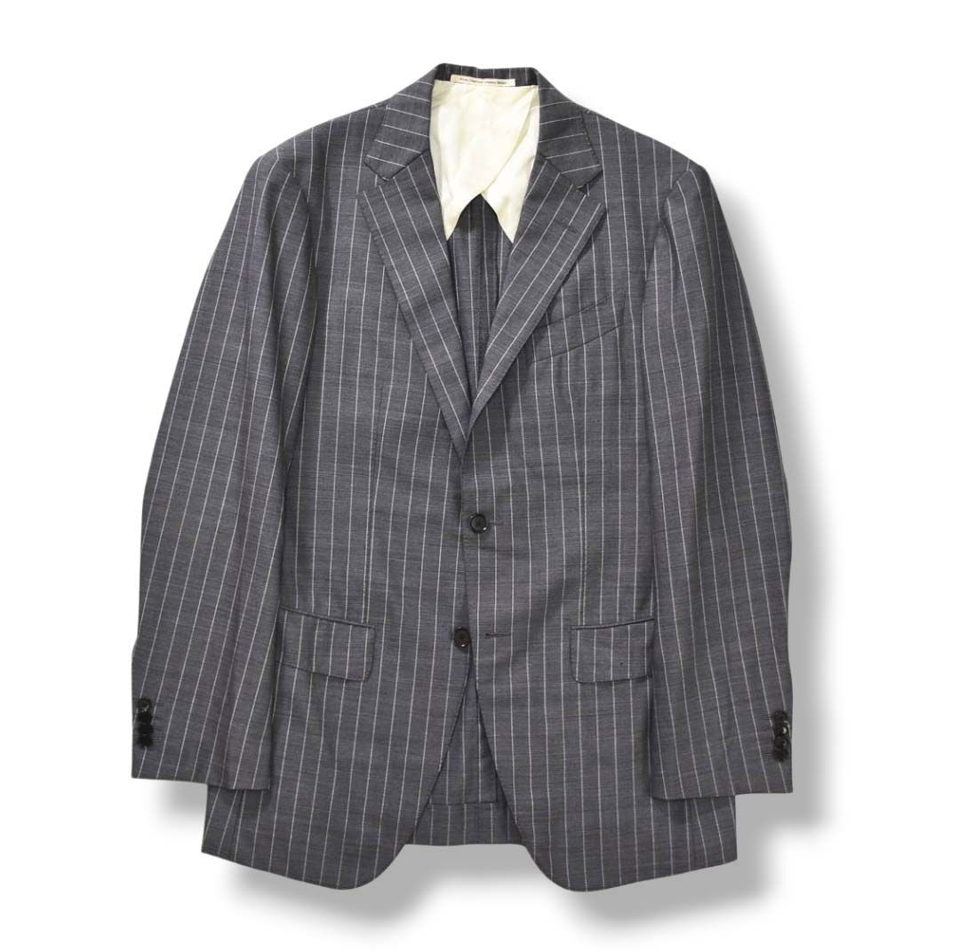 バーニーズニューヨーク BARNEYS YORK x タキザワシゲル Takizawa Shigeru シングル スーツ セットアップ 上下 テーラード ジャケット スラックス パンツ DROP 7 46 79 ピンストライプ グレー メンズ