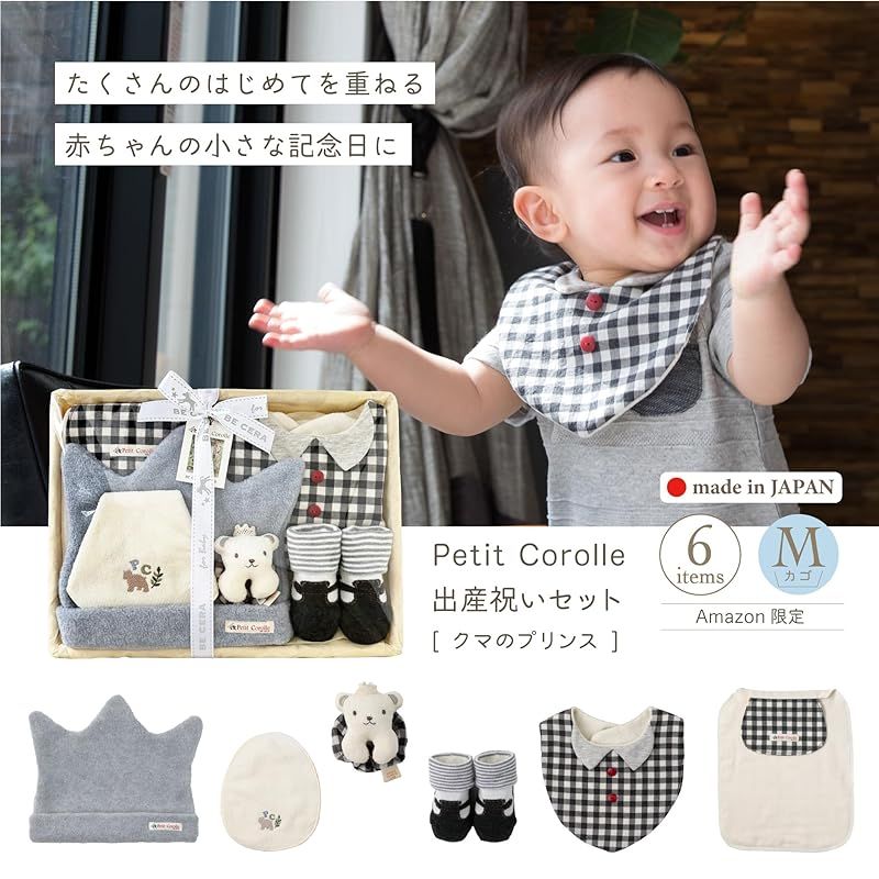 商品名:Petit Corolle プチコロール ビセラ製作所 出産祝いセット クマのプリンス Mカゴ ブラック 6点セット 日本製 ベビーギフト