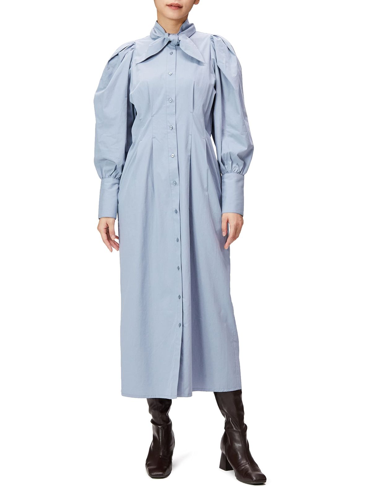 フリーズマート カジュアルドレス ボウタイ付き2WAYウエストシェイプシャツワンピース レディース ブルー S
