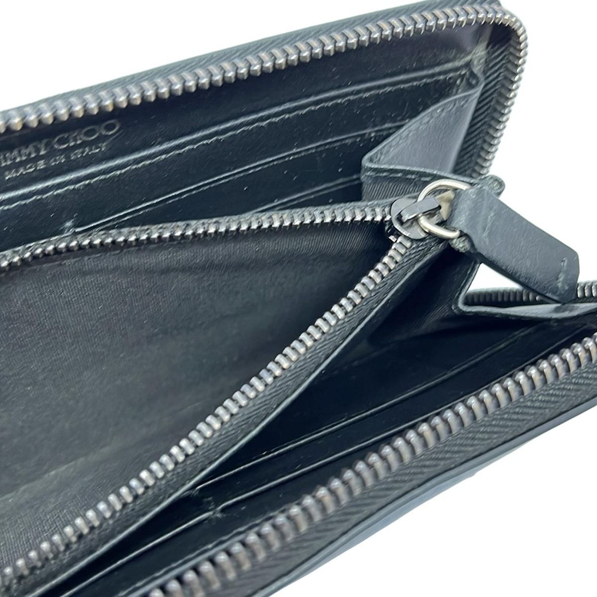 JIMMY CHOO ジミーチュウ 長財布 - ネイビー スター スタッズ ラウンドファスナー レザー
