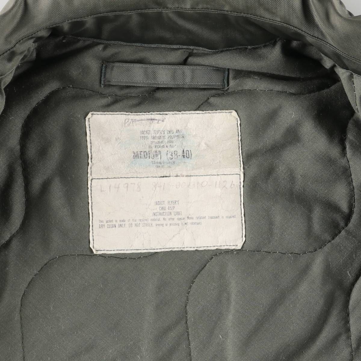 古着 80年代 米軍実品 CWU-45 P ミリタリー フライトジャケット MEDIUM 38-40 メンズM相当 ヴィンテージ evb 031265