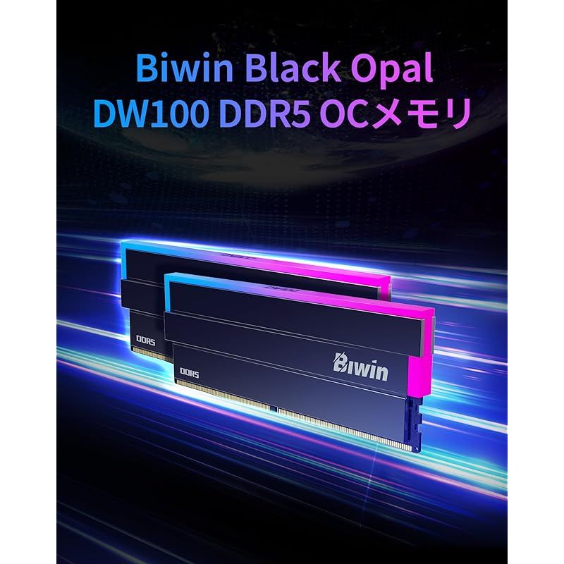商品名:Biwin DW100 DDR5 6000MT/s (PC5-48000) デスクトップPC用メモリ 64GB(32GB×2枚) CL30 RGBライティング Intel XPM 3.0/AMD EXPO両対応 メモリキット ブラック