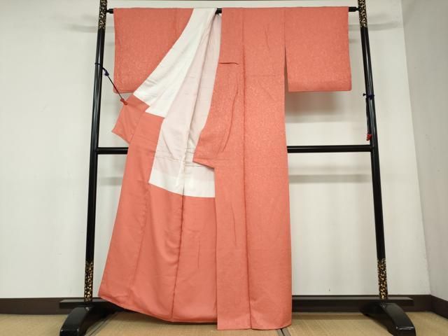 平和屋着物 上質な色無地 草花地紋 赤丹色 正絹 ud