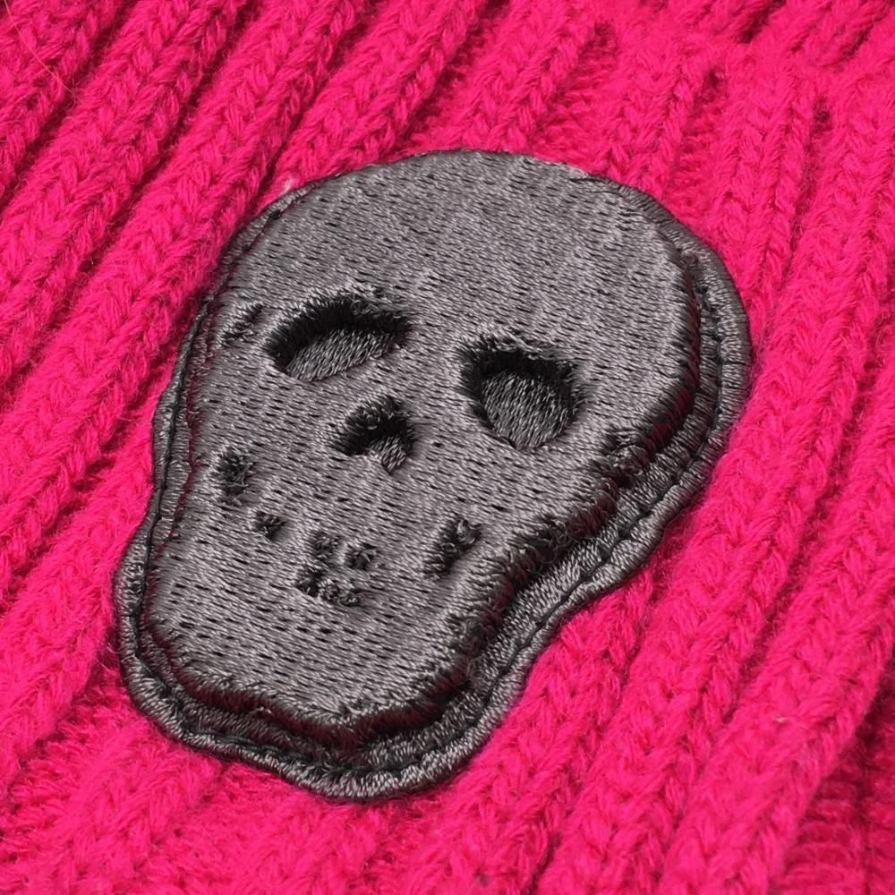 超 マークアンドロナ ニット帽 ダークピンク リブ編み 立体スカルワッペン ゴルフウェア MARK&LONA