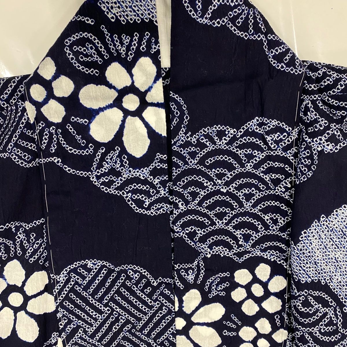 浴衣 身丈168 cm 裄丈66 M 絞り浴衣 草花 青海波 濃紺 綿