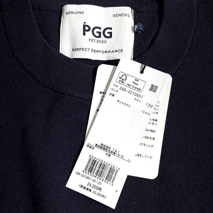 ■PGG by PEARLY GATES ピージージー パーリーゲイツ ゴルフ ハイゲージニット サイドベルト 無地 クルーネック ノースリーブ ニットベスト カットソー ゴルフウェア 268-2273601 定価2.4万 ネイビーブラック M ▲027▼50903w10