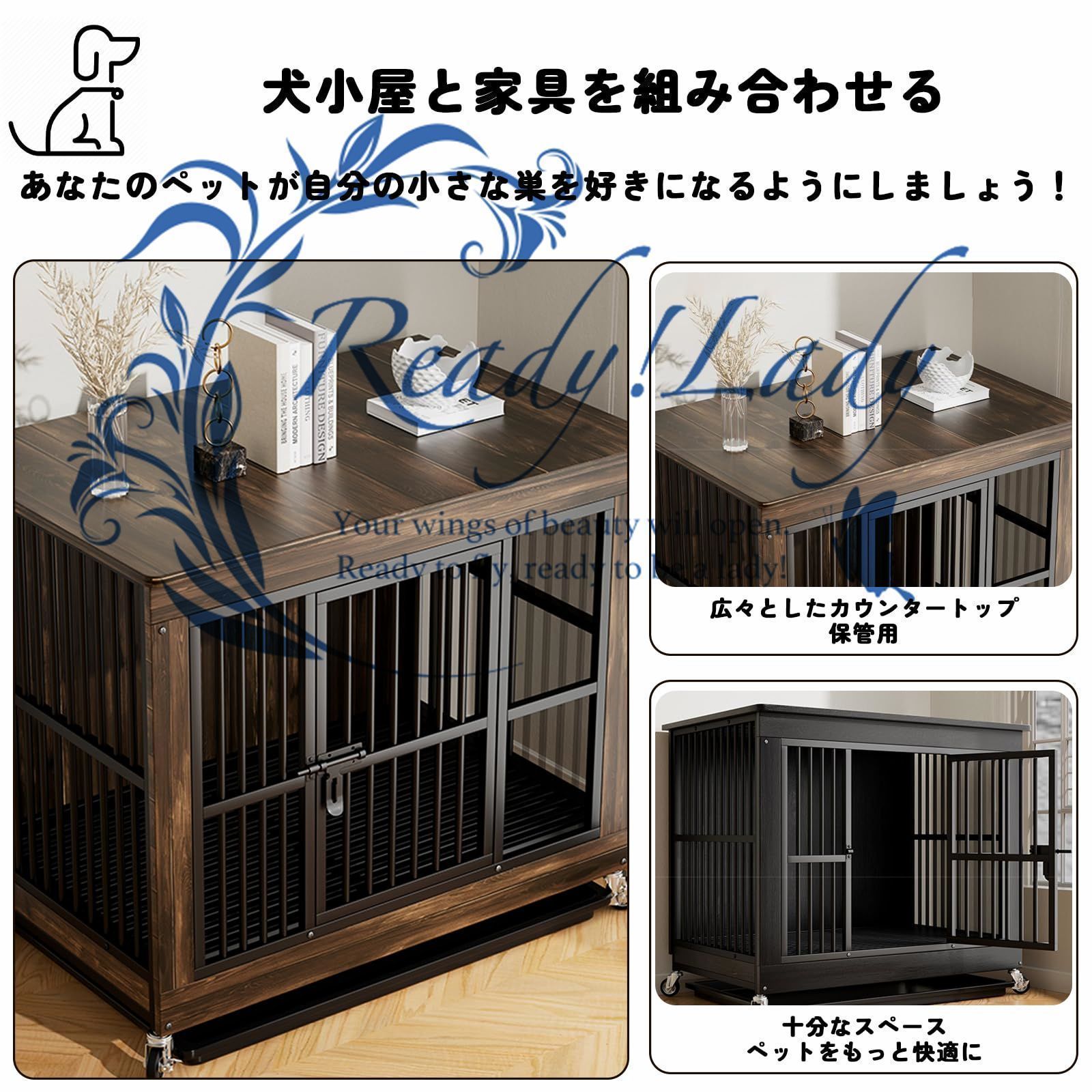 【多機能犬用ケージ家具】この木製犬 ケージは、ペットの住居と家の装飾を統合し、内蔵の収納棚(犬のおやつや用品の保管に最適)と美しいデザインが特徴です。広々とした内部は小型・中型・大型犬を収容でき、リビングルームのケージ家具としても、室内犬小屋としても使用できます