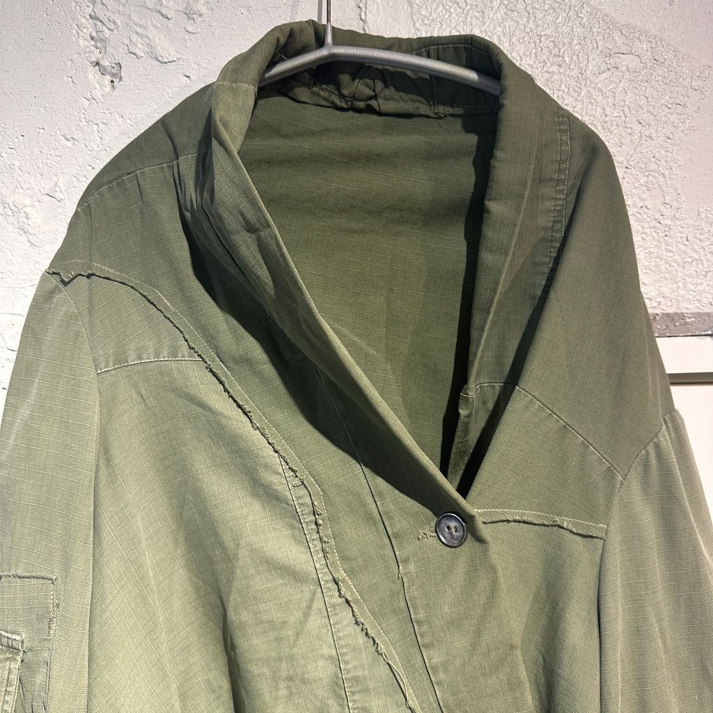 軍物のアウターなどを分解した後繋げる、再構築によって作られたアイテムになります。一点ものでございます。