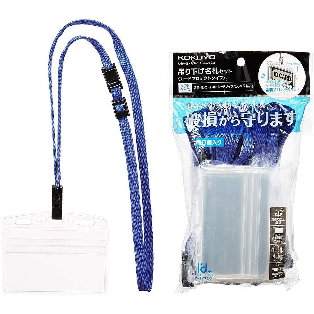 コクヨ 吊り下げ名札セット カードプロテクト チャック式 名刺サイズ 青 パック ナフ SP 180 10 B