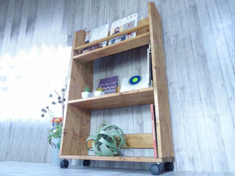 ハンドメイド 雑誌&絵本ラック トールサイズ キャスター付き チーク色