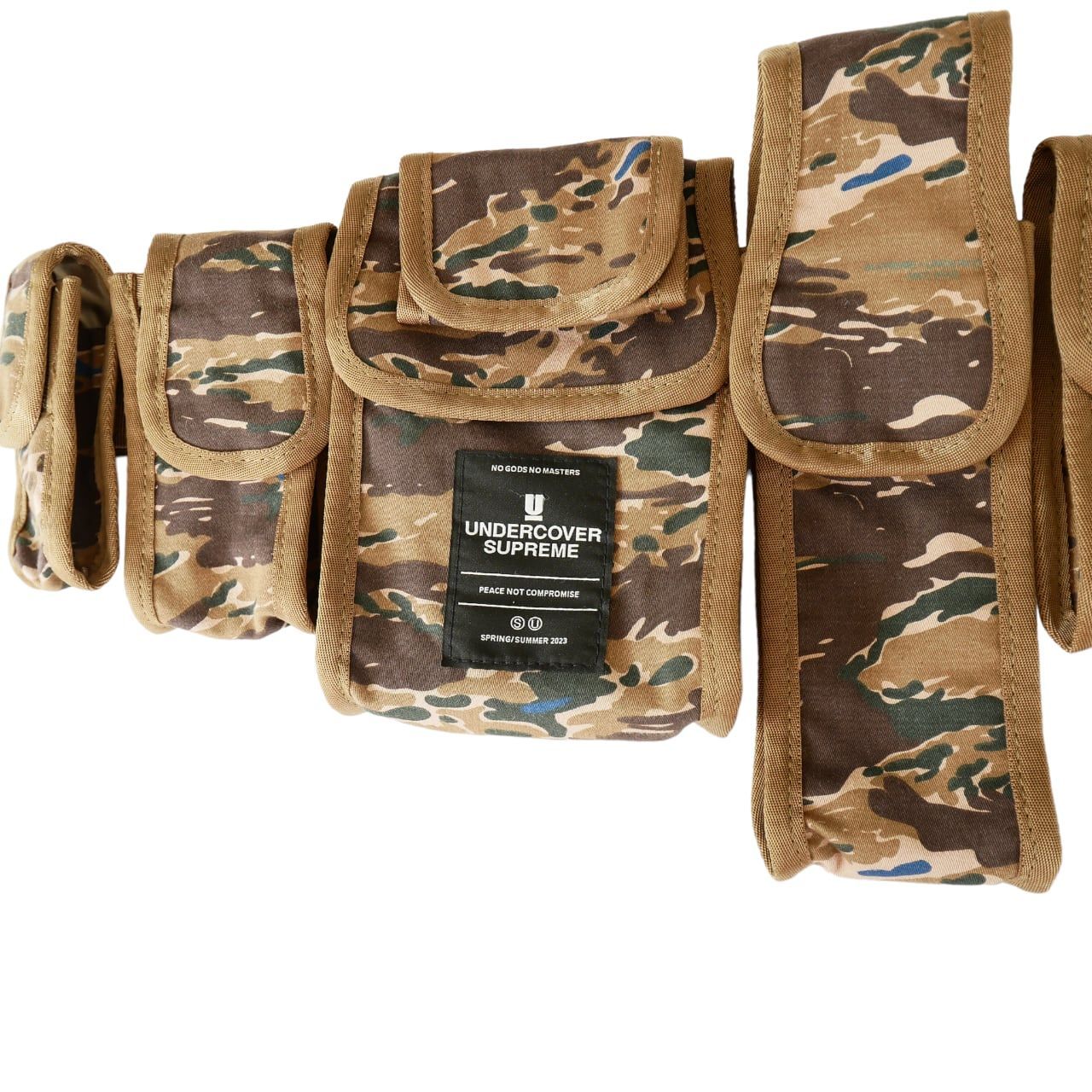 アンダーカバーの名作のベルトバッグをカモフラ柄にしコラボのパッチが付いています。