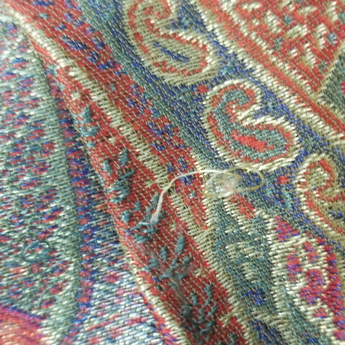 ETRO エトロ ストール ショール カーキ×レッド×ブルー ペイズリー柄 ウール カシミヤ シルク
