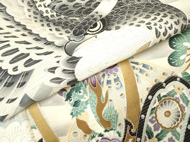 平和屋着物 夏物 お宮参り 男の子 祝着 産着 初着 のしめ 絽 鷹 鷲 龍 兜 渡橋松文 銀彩 ma