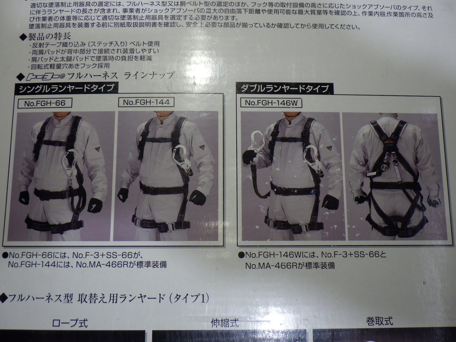[トーヨーセフティー] TOYO フルハーネス型 伸縮式・巻取式ダブルランヤード No.FGH-146W