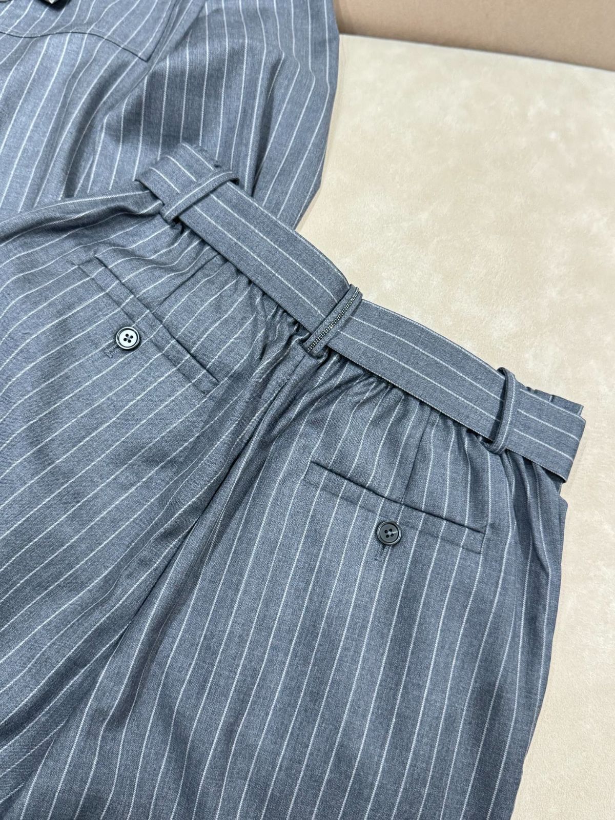 レーS~L ブルネロクチネリ レディース スパンコール襟 ストライプ シャツ パンツセット オーストラリアウール