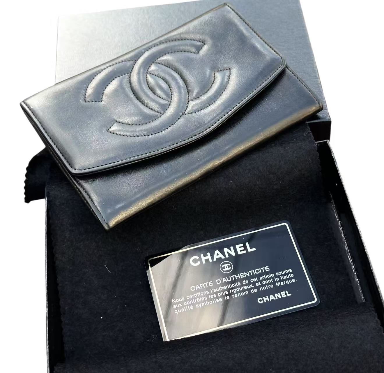 超 シャネルCHANELデカココマークヴィンテージVintageラムスキンカーフCCカードケース名刺入れ小物入れ財布贈り物黒ブラック黒金