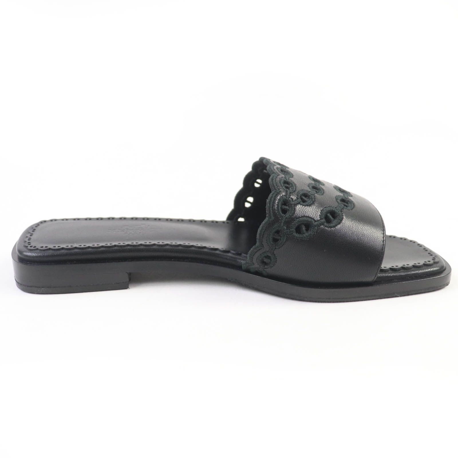 HERMES エルメス ガエル シェーヌダンクル レザー フラットシューズ サンダル ブラック 36.5 箱 保存袋付き イタリア製 レディース