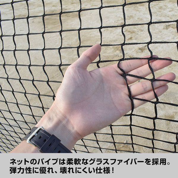 約3.6×2.7mでバックネットとしてはもちろん、チームでのフリーバッティングやトス・ティー打撃などにも使える実打撃可能なマルチネット!