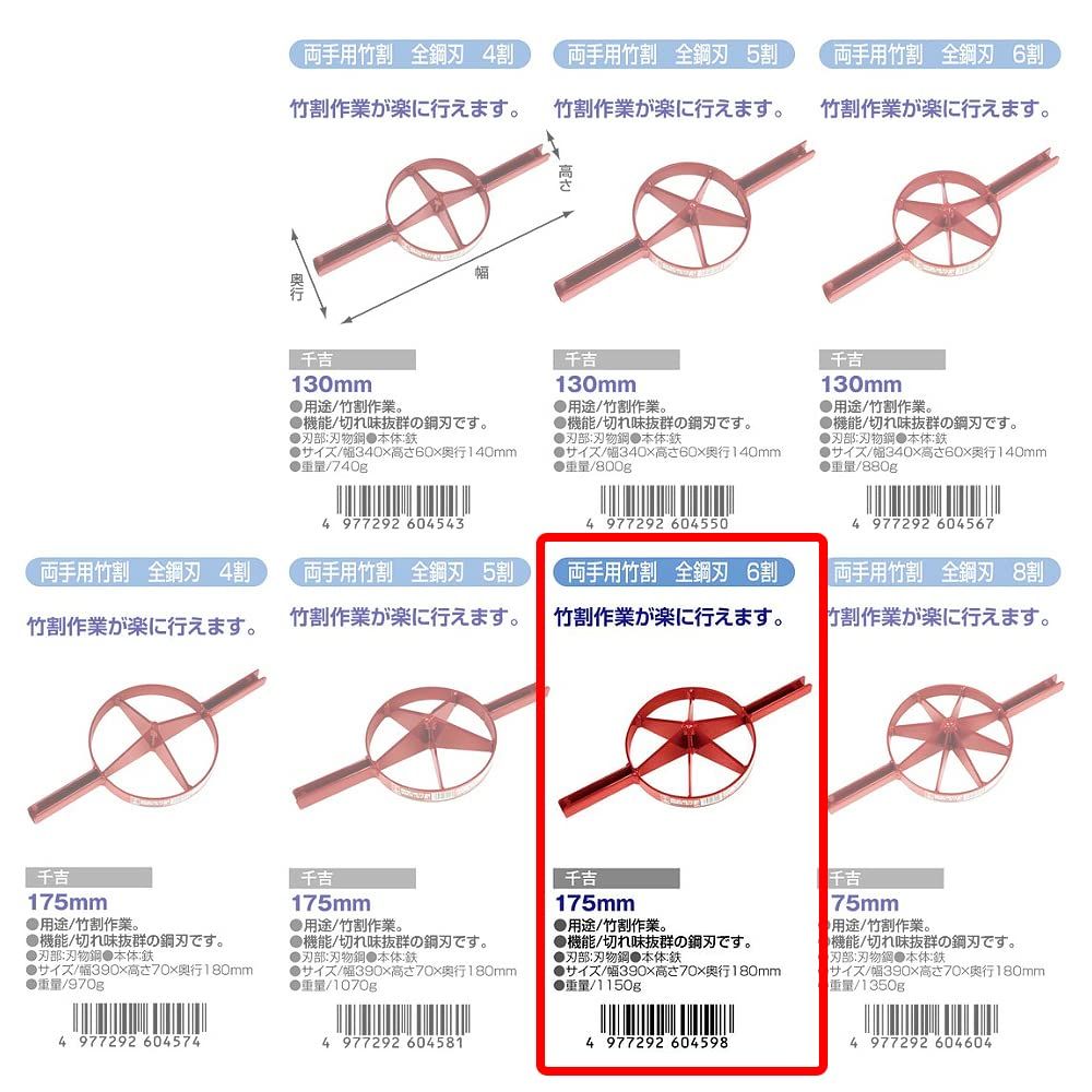 千吉 竹割 両手用 全鋼刃 6割 175mm