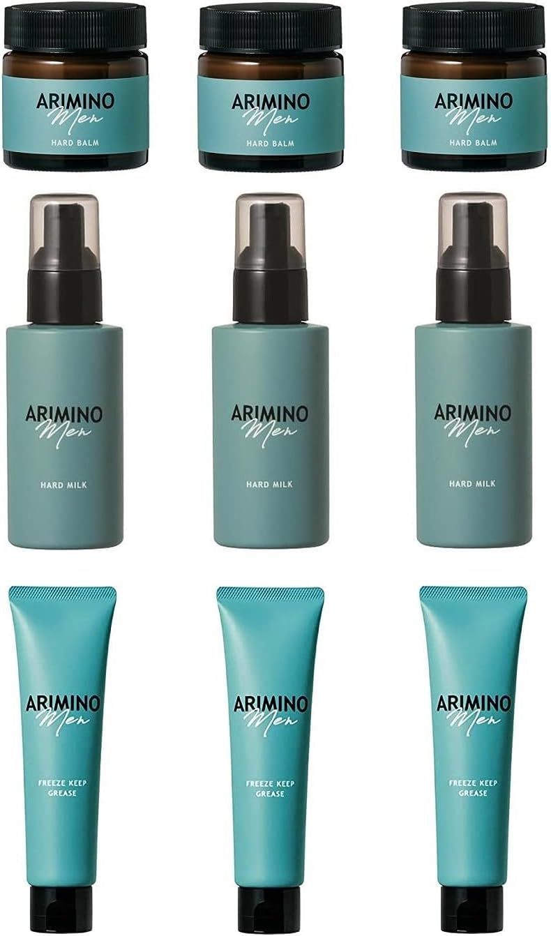 アリミノ メン ハード ミルク 100g ×3個 & ハード バーム 60g ×3個 & フリーズキープ グリース 100g ×3個 セット arimino men