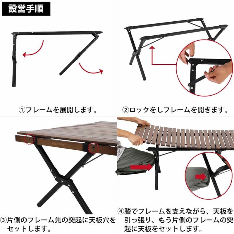 ウッドロールテーブル ロールトップテーブル 折りたたみテーブル アウトドアテーブル テーブル 木製 ウッド アルミフレーム おしゃれ 軽量 キャンプ アウトドア ロースタイル コンパクト 組み立て簡単 インテリア