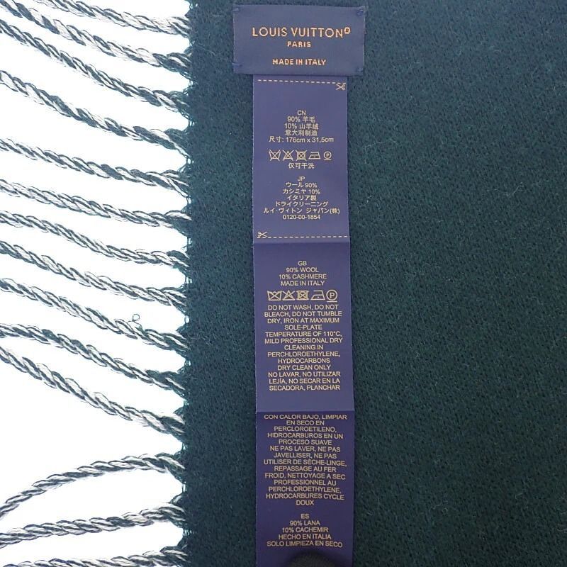 多少毛羽立ちあり LOUIS VUITTON グラフィック デュアル マフラー カシミヤウール グリーン ホワイト ユニセックス