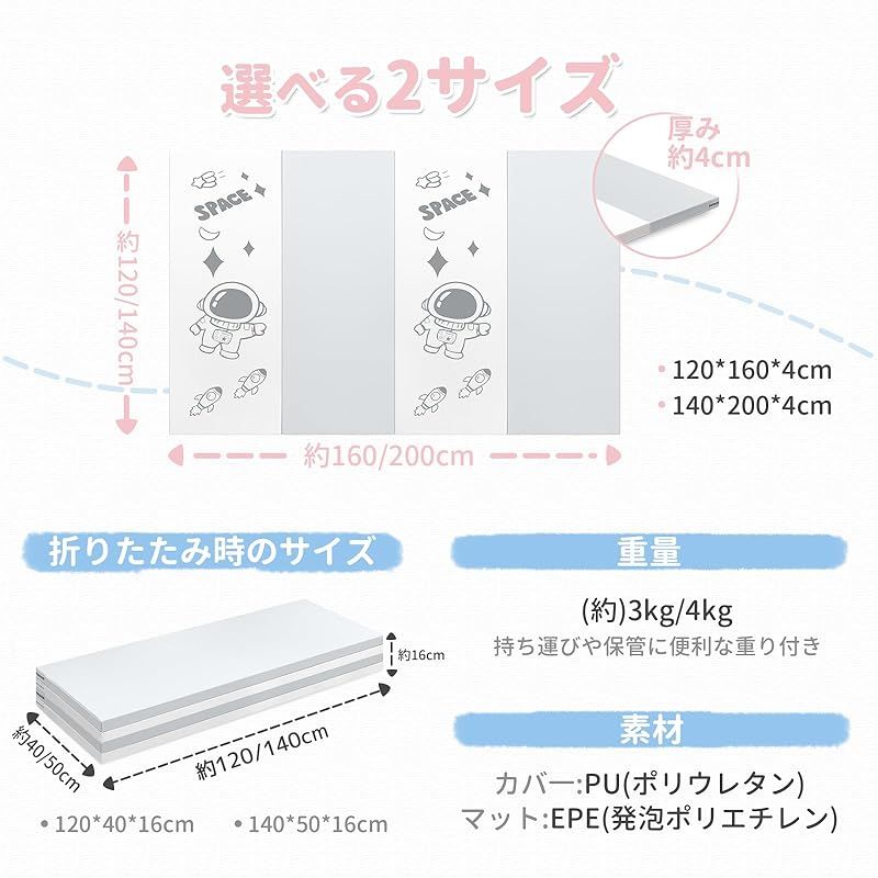 【サイズ】開いた状態のサイズ:120x160x4cm 折りたたんだ状態のサイズ:120x40x16cm(許容範囲:2-3cm) 【重さ】3.05kg