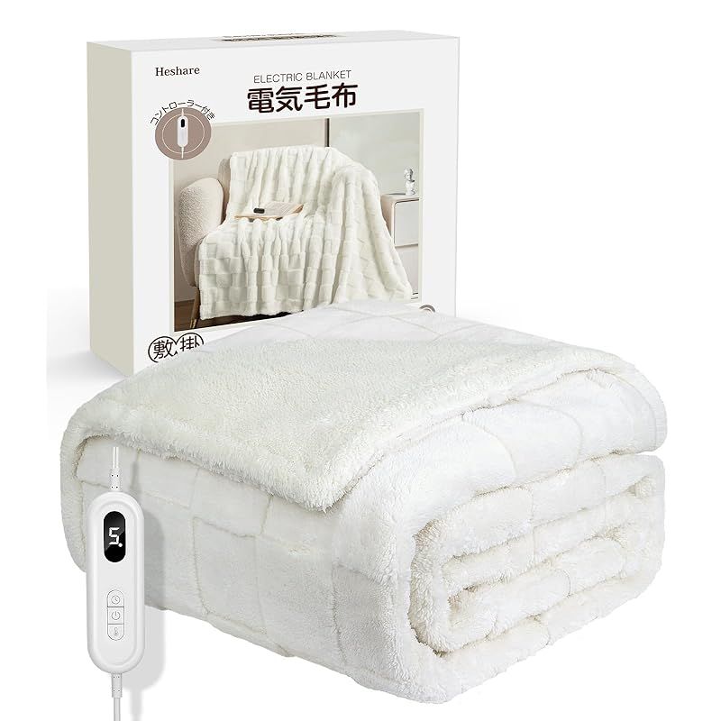 商品名:【掛け敷き兼用】電気毛布 洗える 188×130cm 9段階温調 9タイマー 急速発熱 5層構造 ふわふわ 暖かい コントローラー付き 寝室・リビング用 Milky White