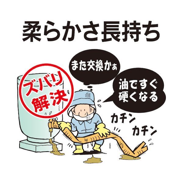 ●【長持ち】従来の塩ビブレードホースに比べ、最も耐油性に優れ、硬化しにくいです。(弊社塩ビホース比較)