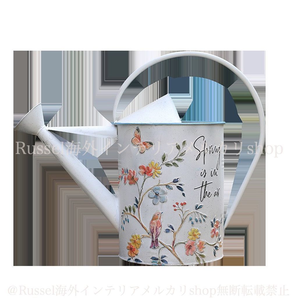 ジョウロ ヴィンテージ調 花 鳥 蝶 絵 イラスト ホワイト 庭 バード フラワー じょうろ 鉄 ガーデニング 雑貨 ガーデン雑貨 ガーデンインテリア ガーデン インテリア 庭の装飾 お洒落 おしゃれ 8-14