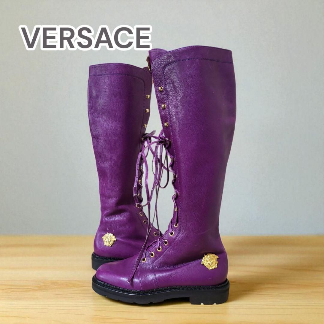 VERSACE ヴェルサーチレースアップブーツ パープル
