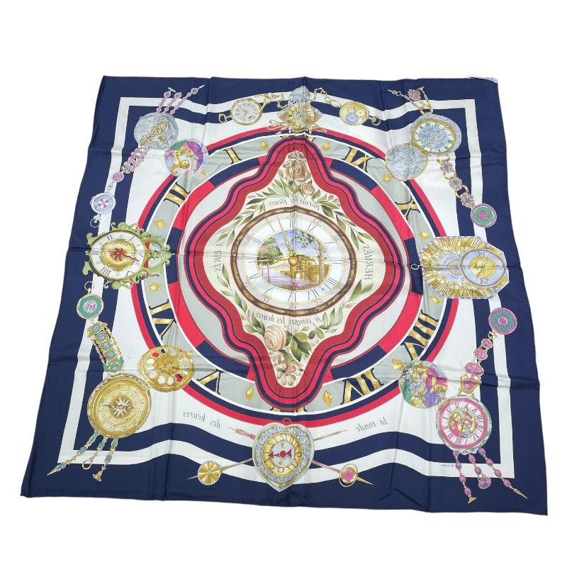 エルメス HERMES カレ90 Parmi les fleurs je compte ネイビー シルク レディース スカーフ