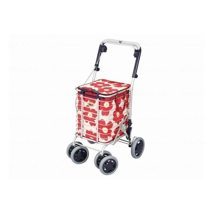 ユーバ産業 ブレーキ付 アルミワイヤーカート 花柄 花柄赤