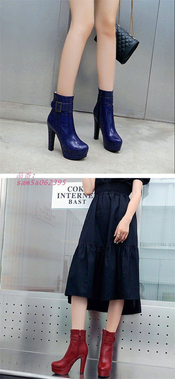 チャンキーヒール ブーツ ショートブーツ レディース 可愛い おしゃれ 美脚 シューズ 靴 秋冬 春 可愛い 小さいサイズ 大きいサイズ 20代 30代 40代 レッド ネイビー ブラック イエロー G4M3