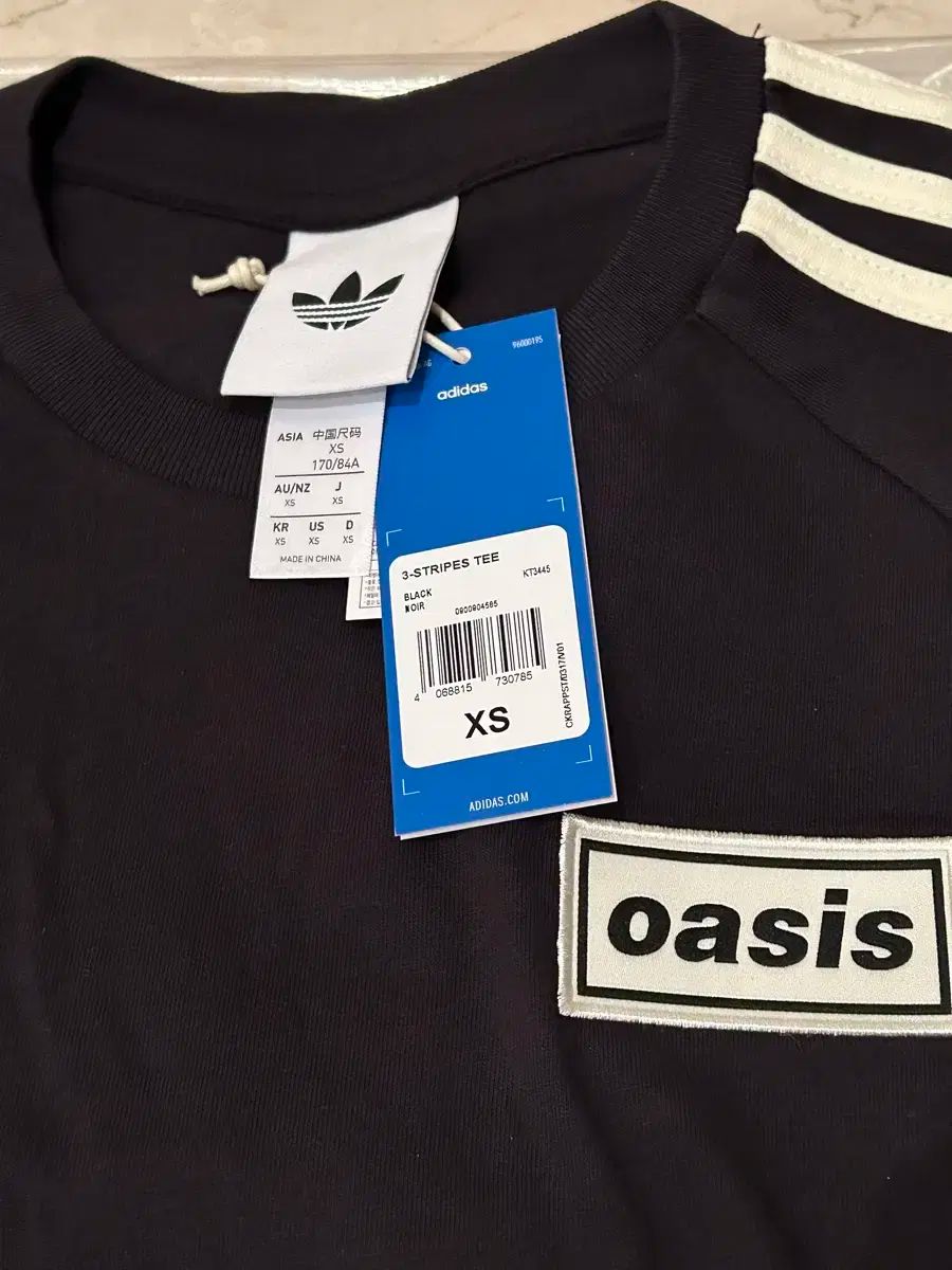 これは最近リリースされたアディダスオアシスのコラボレーションツアーTシャツです。ブラックカラー、サイズXS。サイズは約90-95です。これは韓国のGonghomeから購入した新品です。