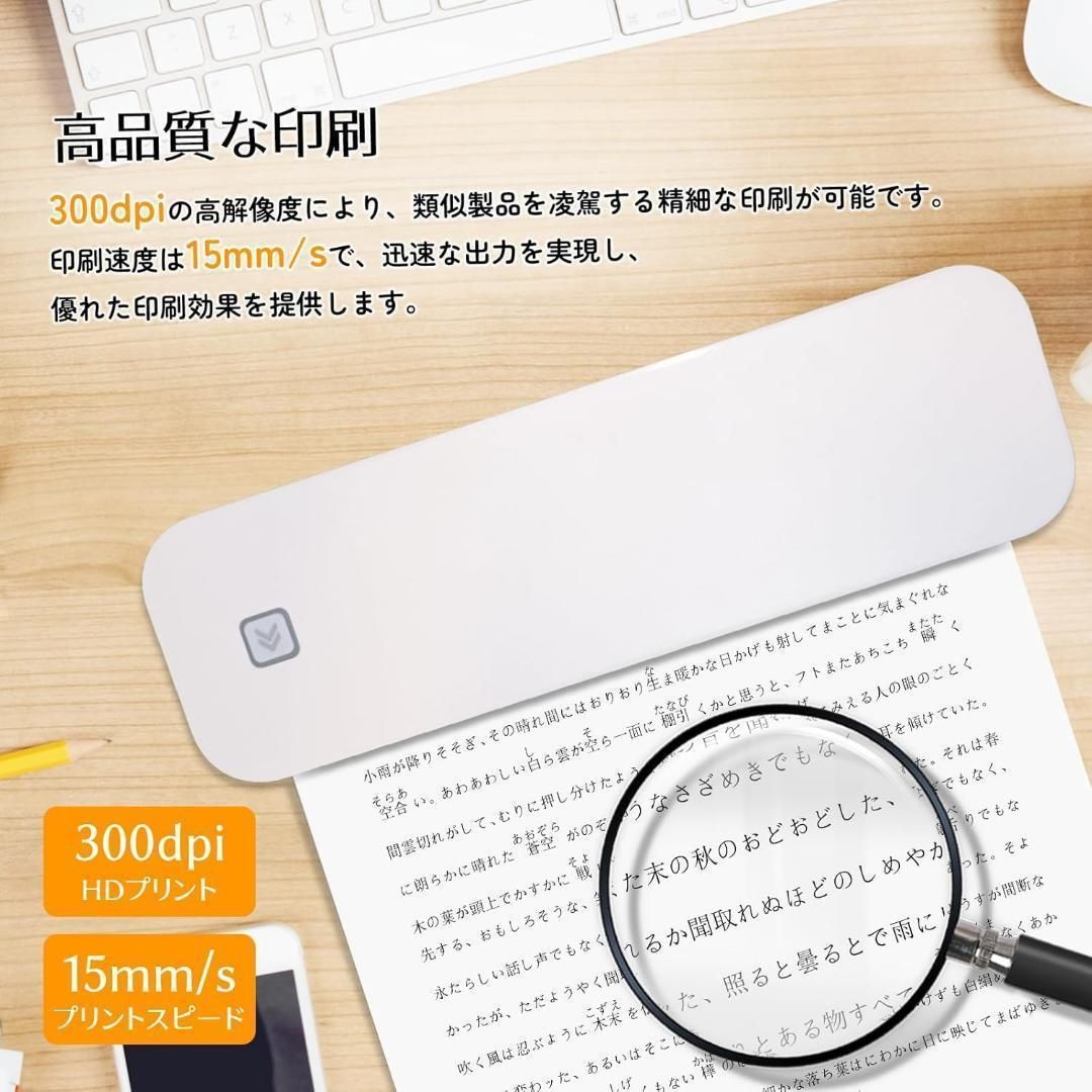3.【高品質な印刷】300dpiの高解像度印刷、類似製品より高精細、15mm/sのプリントスピードは迅速で、印刷効果は抜群です。