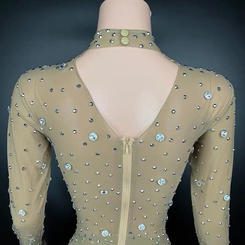 社交ダンスドレス ベリーダンス衣装 全面スパンコール プリーツ ミニスカート シースルー ロングスリーブ ステージ ドレス 2 選択
