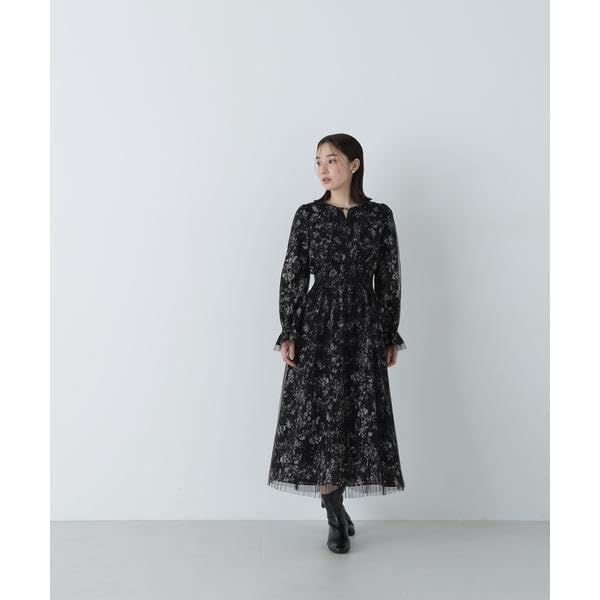 [ナチュラルビューティーベーシック] カジュアルドレス チュールレイヤープリントワンピース レディース クロベース