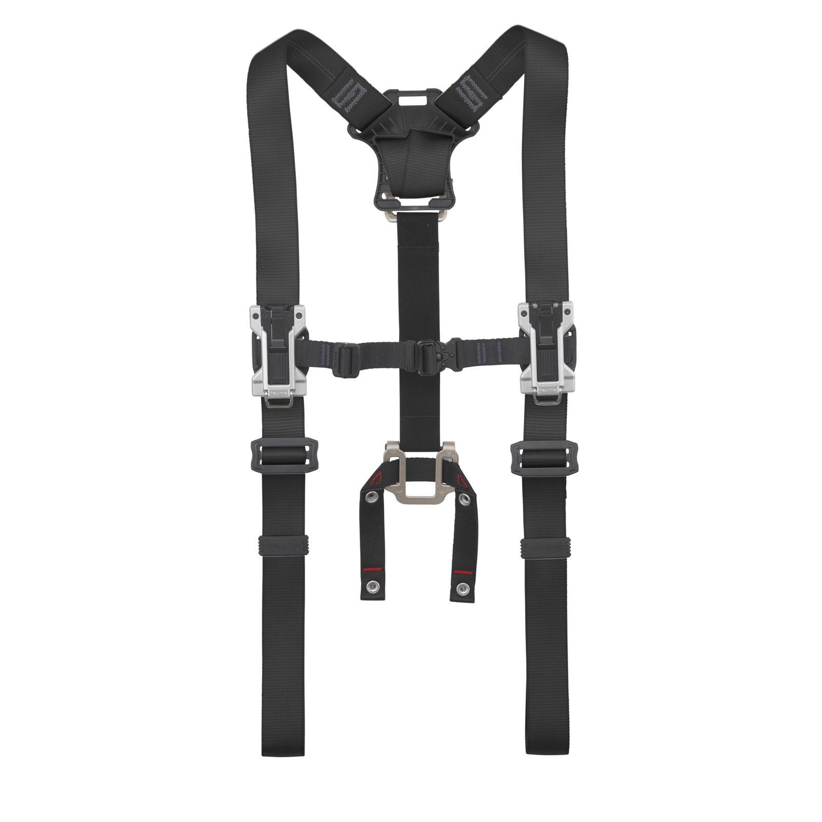 肩に重量を分散し腰の負担を軽減するセフ付きサスペンダー