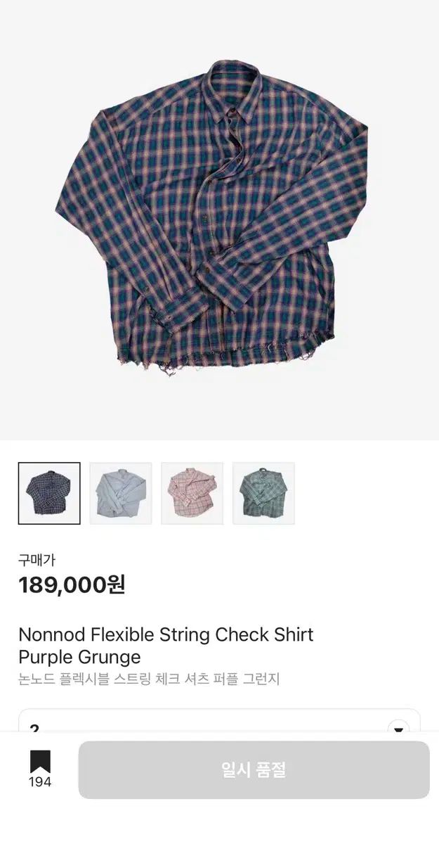 2 Nonnod フレキシブル シャーリング チェック シャツ 紫 グランジ