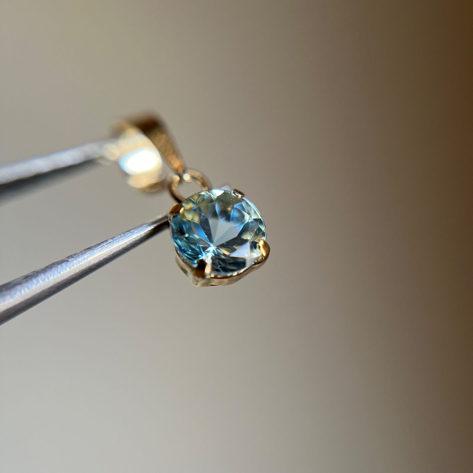 K 18 天然石サンタマリアアクアマリン ラウンド ペンダントトップ チャーム