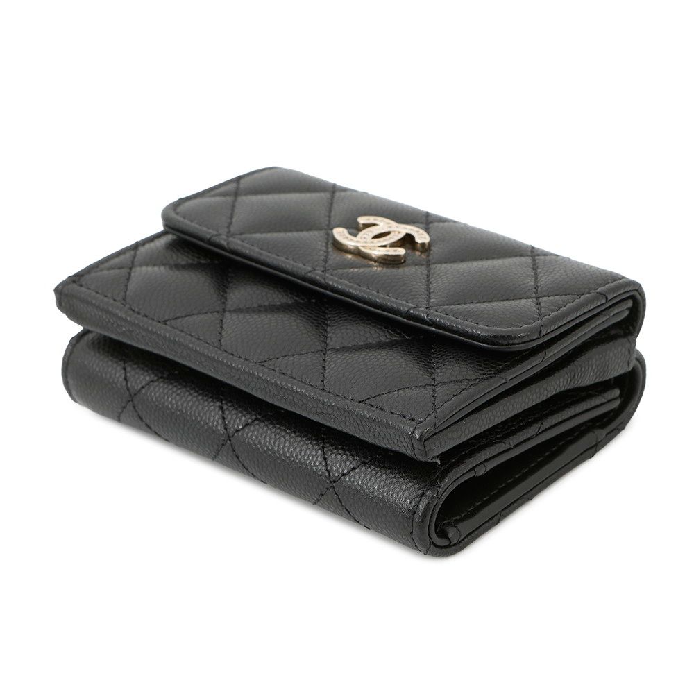 シャネル 三つ折り財布 マトラッセ ココマーク スモール ウォレット ラインストーン キャビアスキン AP4815 CHANEL 黒