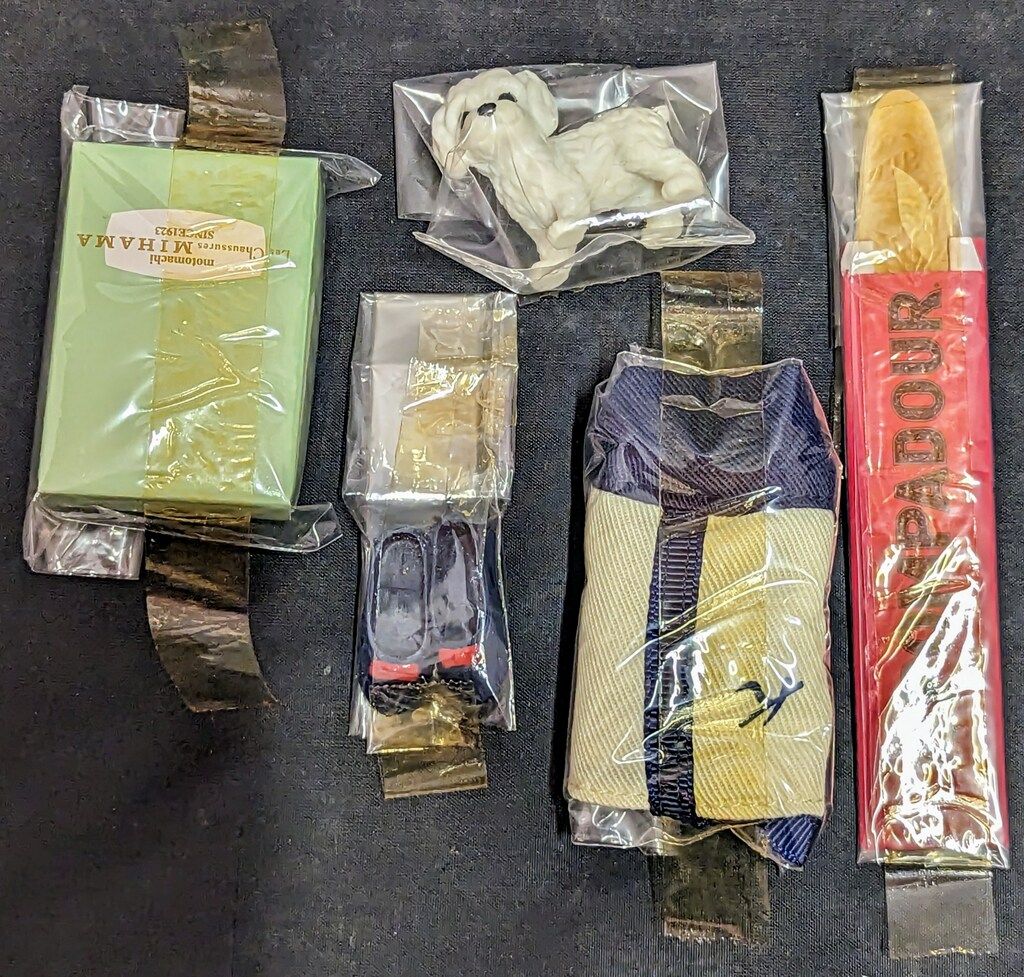 商品には値札ラベルや管理シール、海外出荷向け、国内輸入に伴うシールが貼りついている場合もございます。