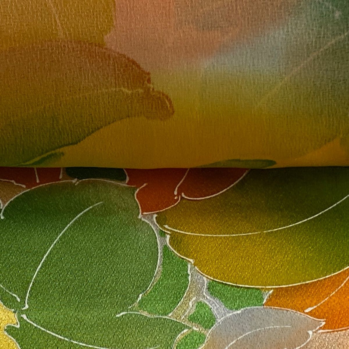 反物 秀品 小紋 葉柄 霞 ぼかし オレンジ 正絹
