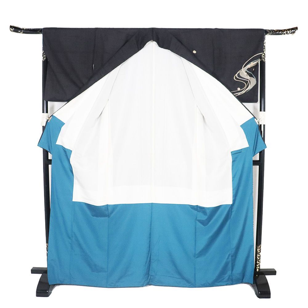 想染 生紬 訪問着 袷 正絹 墨黒 トンボ玉 組紐 流水 トールサイズ ki 31143 レディース シルク ギフト 30代 40代 50代 み