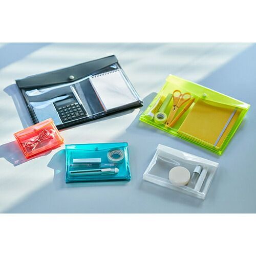 ポップなカラーリングとPVC素材の透け感が楽しめるステーショナリーシリーズ「チアーズ」。気分が上がるようなネオンカラーに加え、シーンを選はず使えるモノトーンカラーもラインアップ。便利な機能も備わって、あなたの毎日を応援します。カバンの中の小物をすっきりとまとめられる、軽量&スリムなバッグインバッグ!・サイズはカード、A6、A5、A4サイズの4展開。・マチが折りたたまれたスリムな本体&軽量設計でカバンの中でもかさばりません。・芯材が入っているため紙類もしっかり保護。・正面は透明ポケットになっているので中身が一目で分かります。・フタはプラホックでワンタッチで開閉できます。■バッグインバッグ・本体:PVC(軟質PVC0.3mm)・芯材:PP【検索ハッシュタグ】#キングジム#バッグインバッグ#収納#チアーズ#CHEERS!#ネオンカラー#蛍光色