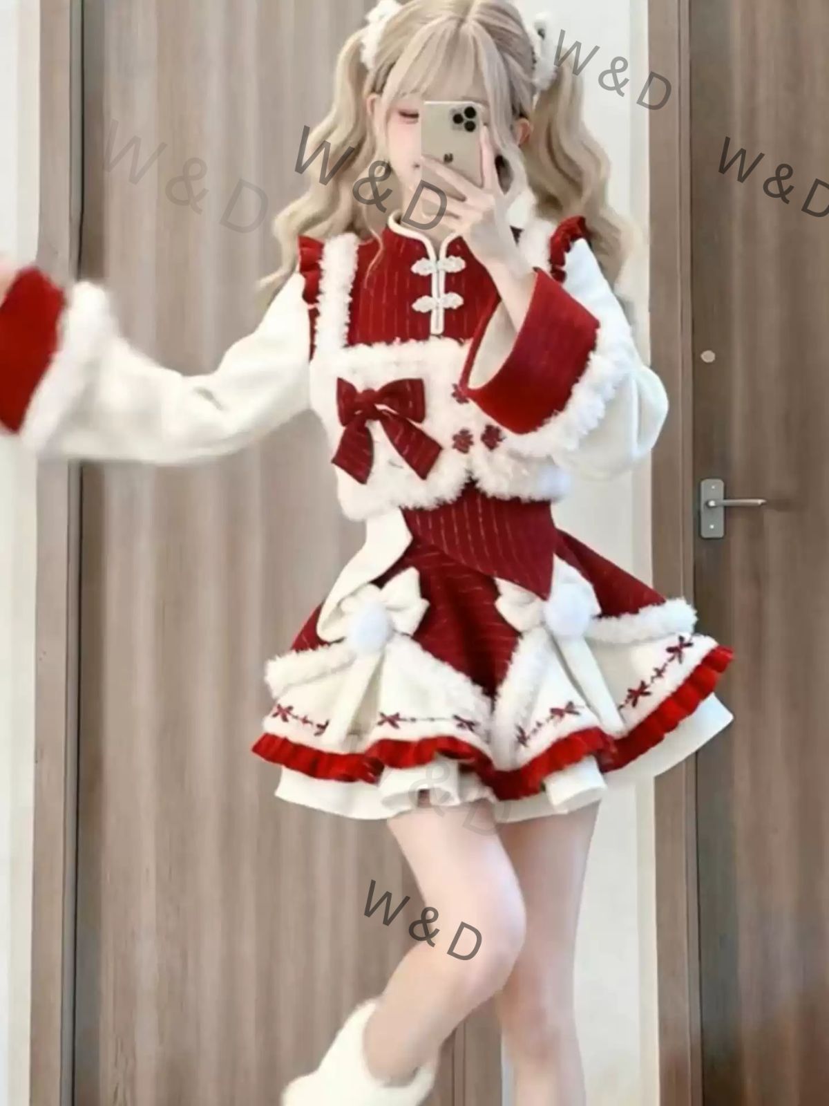 クリスマスらしい温かみのある素材使いと、少女らしい甘いデザインが特徴で、フォトジェニックな仕上がりに。パーティーはもちろん、クリスマスデートや記念写真にも最適な一枚です。特別な日の思い出を、より輝かせること間違いありません。
