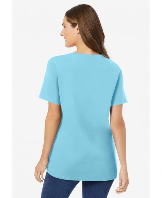 ウーマン ウィズイン レディース シャツ トップス Plus Size Perfect Short-Sleeve V-Neck Tee Seamist blue