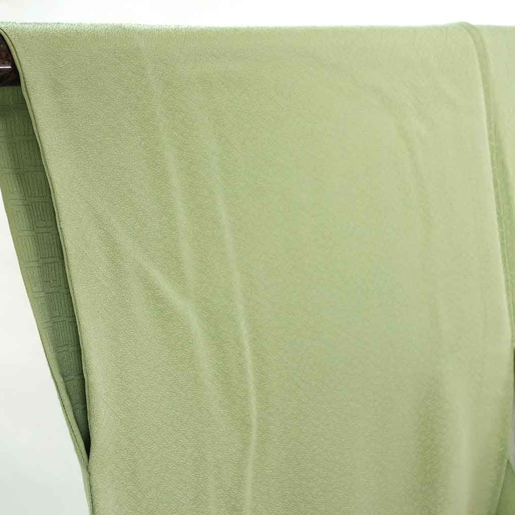 色無地 身丈162 cm 裄65 前幅23 後幅30 袖丈48 袖幅32 レディース 袷 無地 裄Mサイズ 秋冬春用 正絹 シルク グリーン リメイク リユース リサイクル 呉服のきくや