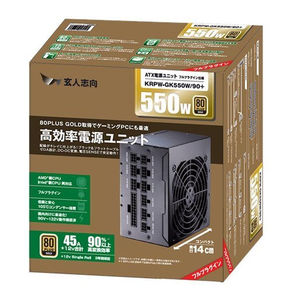 ■電源容量:KRPW-GK550W/90+:550W(定格) / 600W(ピーク)